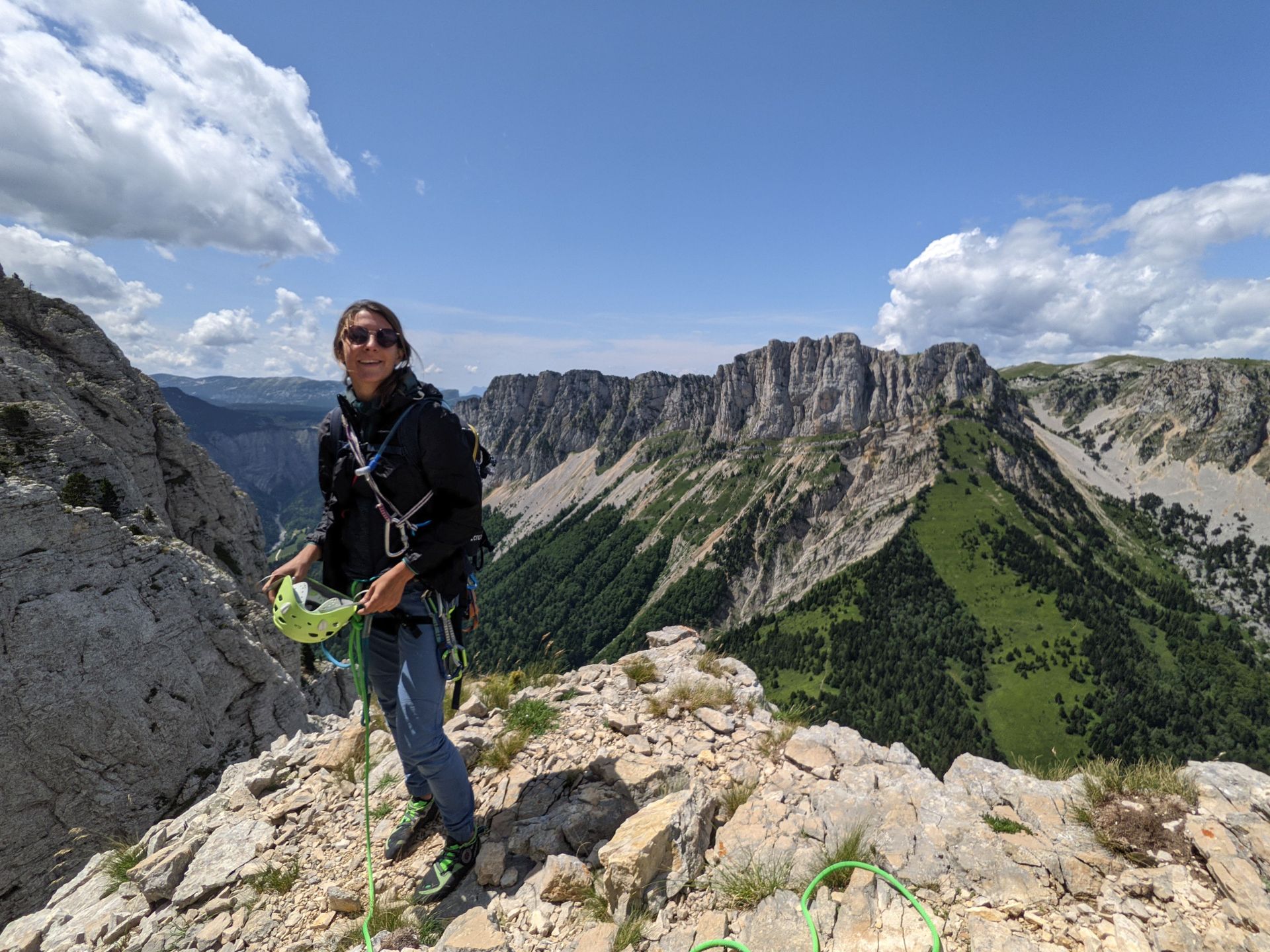 Montagne typique du Vercors, se dressant comme une dent et visible de loin, c'est une des sorties à faire absolument. De plus les parents et grands parents (Flo & Oliv, Odette, Isa), l'ont gravi il y a à peu près 30 ans par la voie normale ..! On décide de s'engager non pas dans la voie normale (qui s'apparente plus à de la via ferrata), mais par la jolie voie de la tour des Gémeaux : 300m de voie dans du 5c/6a max, avec très belle longueur (L5) en dièdre. Majeur 😍 Pour tenir les délais et arriver à l'heure du dîner à Nice, on ne traîne pas mais on prend tout de même d'admirer le paysage depuis cette plaine posée en haut de cette dent - où chaque paroi plonge à pic et fait froid dans le dos si on ose s'approcher du bord (mais pas trop quand même)