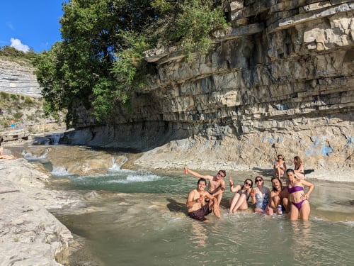 On devait aller au refuge de la Pra ce weekend avec les copines d'Ambre, mais ils annoncent un tellement mauvais temps que la veille au soir on décide de tout chambouler. Pas très cool pour le refuge, mais probablement un bon choix vu comment ça tire la langue sur les 300m de D+ qu'on fait dans la forêt de Saou !! Heureusement on trouve des super spots de baignade pour passer des bons moments à barboter au soleil, et le village de Saou est vraiment super beau avec une auberge du Poney Fringant, oui oui comme dans le seigneur des anneaux !