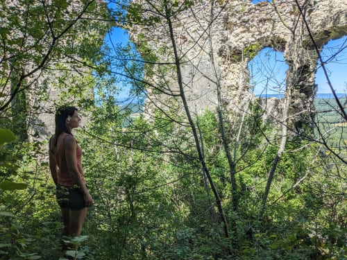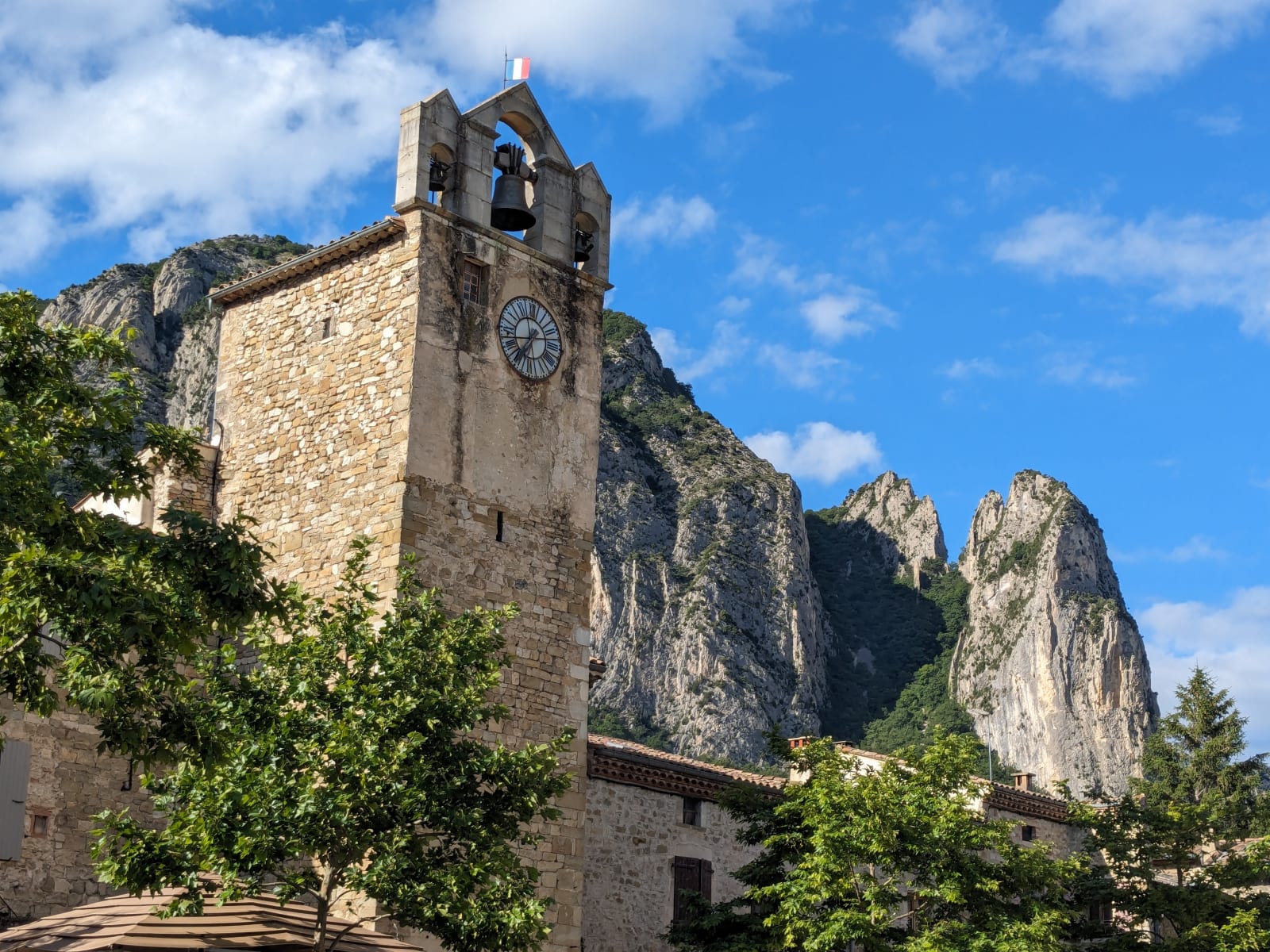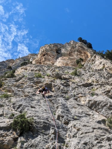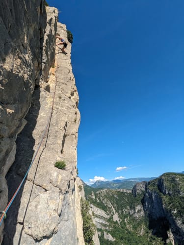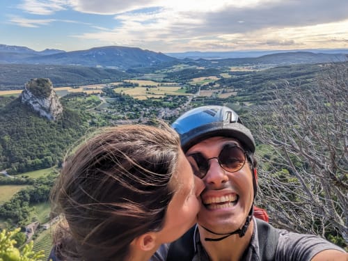 Petit weekend en famille dans la Drôme, et, l'avantage d'avoir les parents, première grande voie depuis qu'on a Kuma ! Première journée avec une balade autour de l'auberge des Dauphins pour visiter la forêt de Saou, toujours aussi magnifique. Puis petit tour du village avec un petit verre au soleil sur la place et la visite d'une chapelère toute droit extraite d'un film d'Harry Potter. Et enfin le soir repas au resto Cerise Vinaigrette, très chouette moment ! Le lendemain, petit tour des villages environnants, avec mention spéciale à Soyans pour ses très belles ruines de château et sa magnifique ruelle toute fleurie de roses. On finit la journée avec la SaharaOuiOui, voie courte de reprise mais qui fait bien plaisir ! Très jolie escalade et on a bien avancé dans le timing. Ambre en a même profité pour poser 2 / 3 coinceurs. En suivant les judicieux conseils de Nico, on grimpe les 3 derniers mètres pour arriver sur une terrasse un peu pourrave et faire un "selfie sommet". Ca nous coûtera quand même 15min de tir à la corde de toutes nos forces pour lui faire passer le rebord ^^