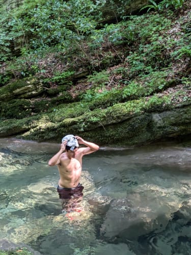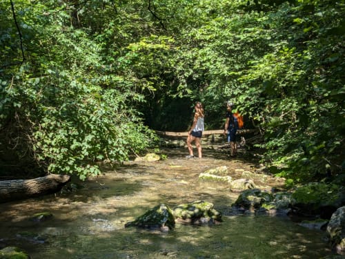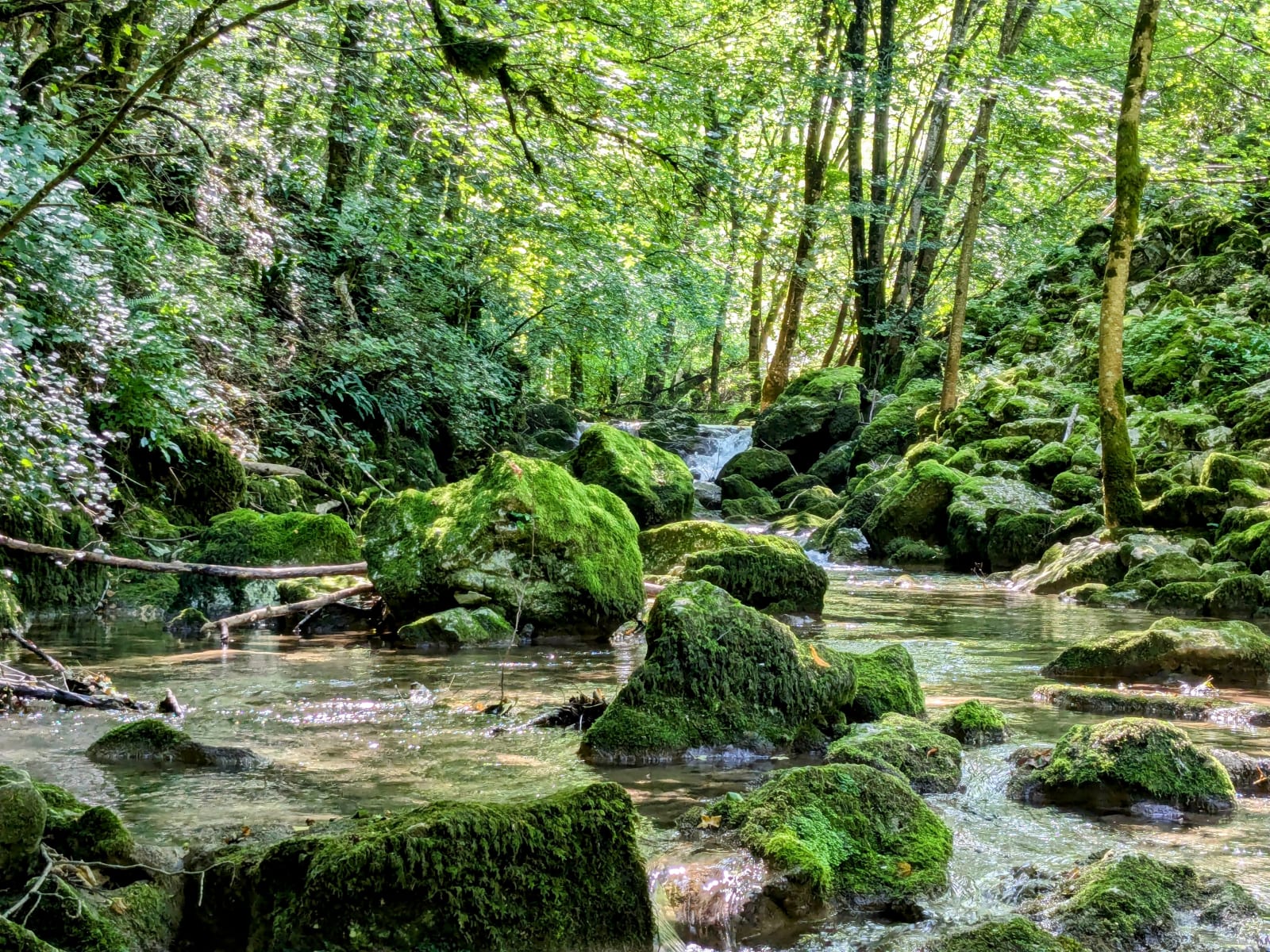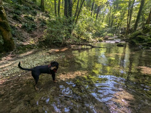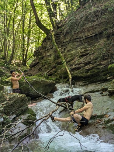 Journée canicule, donc on décide de s'échapper dans un cours d'eau quelconque pour survivre (et regarder les premières épreuves de JO). On va au pont Charvet en amont du Furon, et on marche dans le lit de la rivière. C'est super beau, et super méga agréable. On a même réussi à dégager un mini toboggan avec Kevin au péril de notre vie, et de celle du chien aussi.
