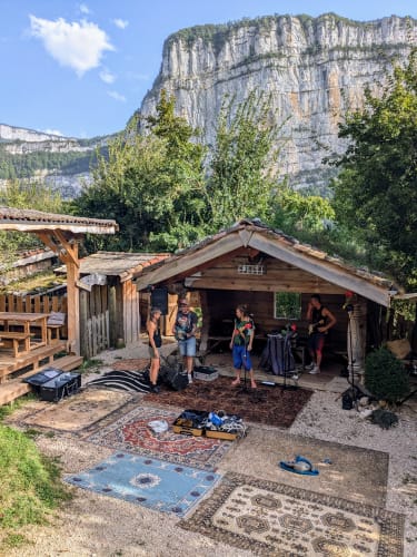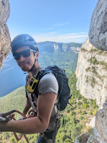 Grosse ambition pour cette journée avec Shesep Ankh, mythique voie du fond du cirque. Nicolas part avec beaucoup d'appréhension sur le niveau, et malheureusement quand on arrive en bas des rappels, d'énormes pierres tombent très régulièrement du haut de la falaise... Après 3 longueurs sous stress intense, on réalise qu'on arrivera pas à se détendre et on décide de faire demi tour. Le seul soucis c'est que du coup on est MEGA loin de la voiture (~3h de marche). Du coup, on prend le temps de se poser au cabane café, de se prendre une glace et une limo maison. Puis Nicolas se met en route pour ses 3h de marche et après 200m une voiture s'arrête... C'est Fabien notre guide de spéléo ! Il ramène Nicolas jusque devant sa voiture, incroyable comme rencontre hahaha Comme quoi, des fois, il vaut mieux faire demi tour et ne pas avoir de regrets (ou de remords, j'y comprend toujours rien à cette expression)
