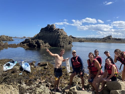 Vacances en Bretagne avec la famille, la bande de copains de Mel, Michou, JP, Nanou, JN et Chachou. Et ben on s'est pas ennuyés !! Entre tous les enfants, la pêche aux palourdes (BIEN MEILLEURES que les coqs) à Crukin, la visite de Beauport et le retour par la plage, la balade avec ouverture de blocs, la sortie Kayak, le DELICIEUX repas de homard de maman et le stage de Wing, on peut dire qu'on s'ennuie rarement en Bretagne ! Comme quoi, pas besoin de se pendre au bout d'une corde sur une falaise pour vivre intensément ;)