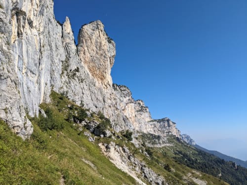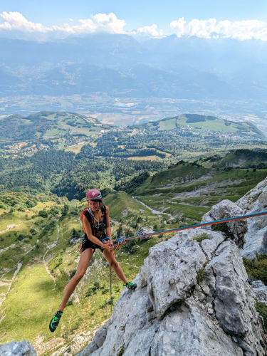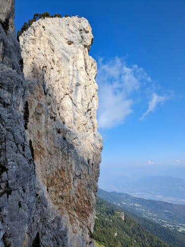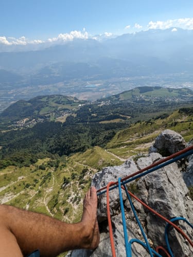 Ce samedi, on avait prévu un programme chargé : Jardiland le matin, festival à Chamrousse l'après midi ! C'était sans compter qu'en fait c'est encore l'été, et que le Rocher du midi, et ben avant midi c'est la fournaise. On s'est fait OUVRIR : Du coup bilan on a fait tomber un reverso au deuxième relais, et on a décidé de redescendre au 3e après avoir déjà bien grimpé. Au final, c'est quand même de la très belle grimpe dans un cadre absolument magnifique, entouré des parapentes et des planeurs. On revient bientôt avec Ivann et Emile pour la voie de la grotte !!