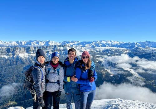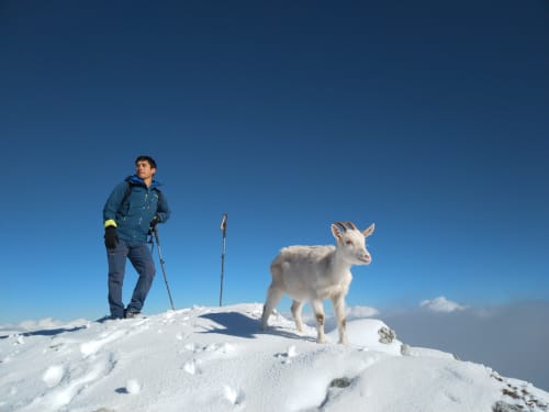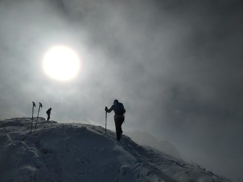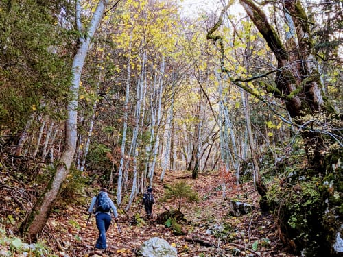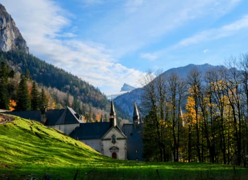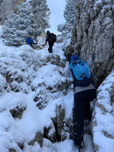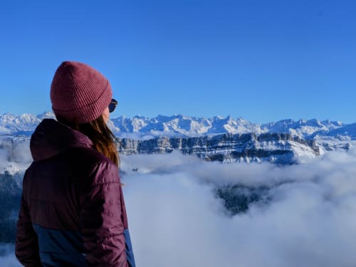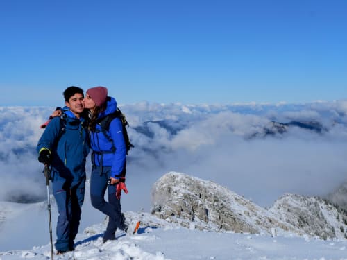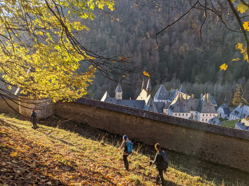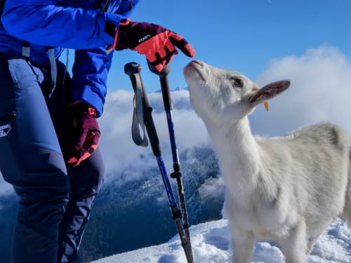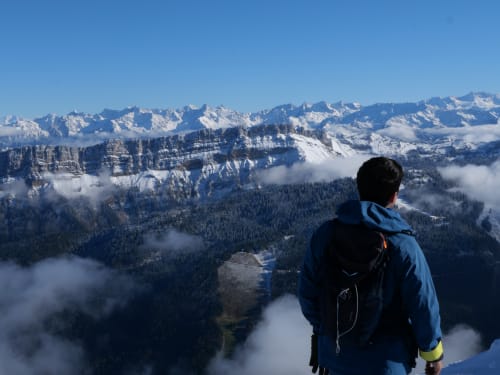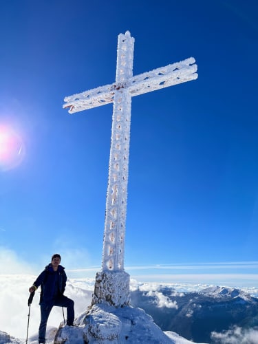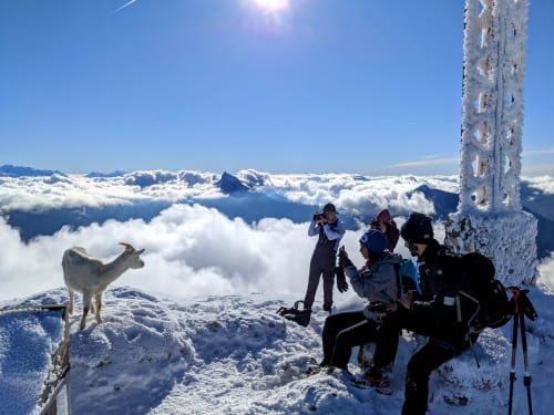 Premières neiges et un weekend à Grenoble, c'est le moment d'aller profiter des beaux paysages blancs. On se motive avec Emyly et Kevin pour une rando sympa pour monter au grand Som, l'un des plus hauts de la chartreuse et celui qui domine le monastère. Sur la route on a quelques moments de doute : les nuages sont super bas et assez épais... Kevin comme dab est méga optimiste, et après tout il a raison on a rien d'autre à faire que d'espérer que ça se dégage. Quand on arrive, c'est fuuuuuull nuages, et il fait bien humide et frisquet. Heureusement pas de neige en vue pour la montée pour le moment, on est pas très équipés. On démarre sur le sentier en matant comment trouver des chanterelles (on retourne même quelques t'as de feuilles près de fougères, a priori c'est plantes a sol acide sisi). Ça rigole bien et ça avance bon train. On quitte assez rapidement le sentier pour s'attaquer a la montee au col, et d'un coup on tombe sur la limite de la neige. On dirait qu'on a trempé juste le haut de la montagne dans le sucre glace. Au col on a les pieds dans la neige, et surtout le haut du crâne dans le nuage. Aïe aïe aïe ! On continue donc dans la neige et le nuage jusqu'à rejoindre l'arête. C'est assez spectaculaire parce qu'on ne voit pas a 10m, tout est en neige et c'est assez raide des deux côtés. On avance donc prudemment jusqu'à tomber sur une petite chèvre toute blanche. On la contourne prudemment, y a quand même du vide partout (qu'est-ce qu'elle fout ici d'ailleurs). Of course, elle nous emboîte direct le pas et grimpe dans les goulets derrière nous en belant gentiment. Et la bam, carrément le troupeau de chèvres sur l'arête. Pas le temps de paniquer, Ambre prend les choses en main et les éloigne en tapant ses batons pour faire du bruit, une vraie bergère. On les dépasse du coup, mais notre copine blanche reste avec nous. Du coup on la baptise pour l'occase, ça sera Béeeeeea la chèvre. Enfin la croix sommitale ! Qu'on voit a peine parce qu'on est encore full dans le nuage.... Si long pour les espoirs de kev, on prend une photo finish toute blanche et on commence à descendre, la montagne ça marche pas a chaque fois. Sauf que 5min plus tard, BAM tout se dégage d'un coup. Demi tour on retourne au sommet ! Méga panorama sur les montagnes et la mer de nuages avec Béa qui pose pour nous, ça claque. On redescend trop refaits, le beau temps s'est carrément installé donc c'est gros gros kif sur les paysages. En arrivant dans la forêt, Ambre et Kev repartent sur l'idée des champignons et passent en mode cochons truffiers a retourner des hectares de feuilles mortes. Le butin est maigre, un bébé chanterelle, mais la fierté est là. On arrive pour la golden hour au monastère. On a l'impression d'être Harry Potter qui débarque a Poudlard c'est trop classe et c'est juste hallucinant comme c'est grand. Clairement so ils sont 10 moines la dedans, ils doivent se croiser max une fois par mois ! Retour a la voiture trop contents, on réalisera qu'en arrivant à Grenoble qu'on a bien forcé au final, et du coup repos le lendemain !