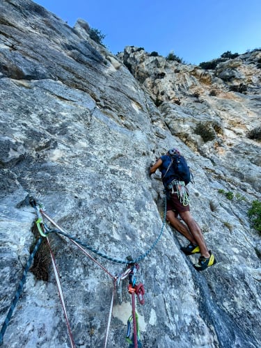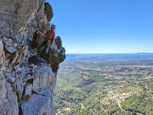 Pour notre anniversaire de mariage, on décide de se faire un petit plaisir coupable à deux et de retourner dans notre toute première grande voie, la Malet au Baou 🫰❤️ Au final on fera un très beau mix entre la Malet et Pour qui sonne le glas, raconté en détails dans le topo d'Ambre sur Camptocamp. Une sortie qui nous a réconcilié avec le Baou, pas très sauvage mais très belle grimpe !
